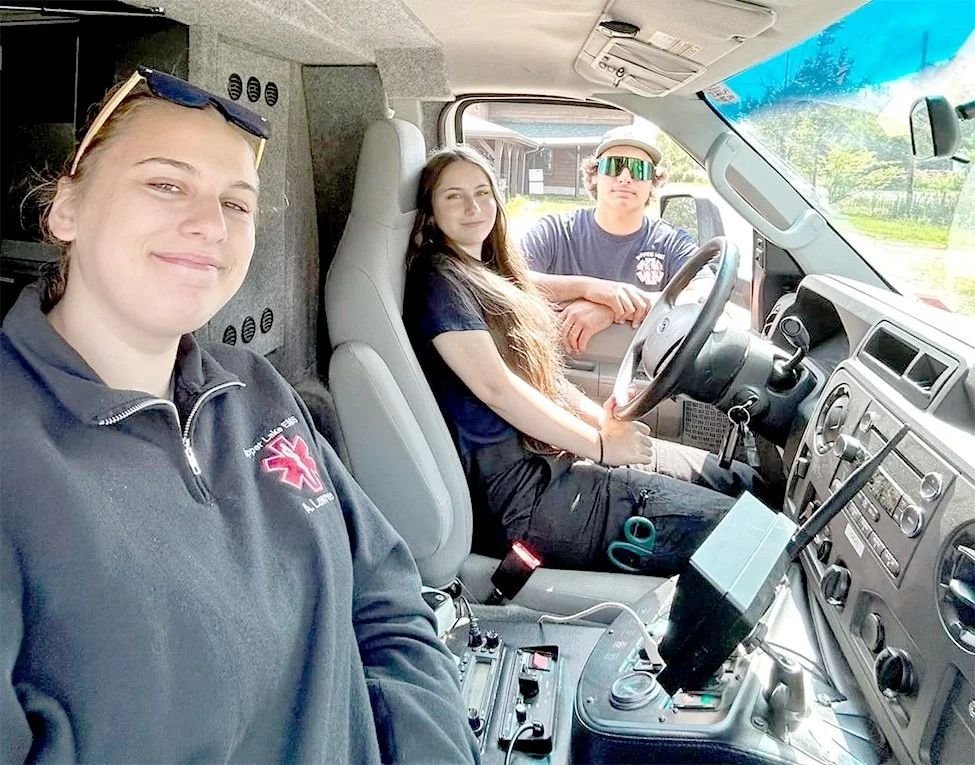 Among the volunteers helping out with the often life-saving care given by the Tupper Lake Ambulance and Emergency Squad are three newcomers, promoted to full membership earlier this year. The trio were the first three junior members who crested the age of 18 and became full members. From left to right were Alliyah Lawrence, Trisha Mayotte at the wheel and Carsyn Maroun.