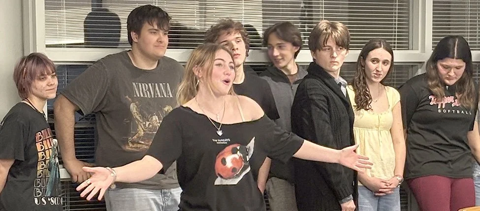 In the absence of the Free Press publisher that evening who was at a town board meeting Vocal Music Teacher Liz Cordes, who with her husband George, routinely direct the high school musicals each year getting the very best out of their always talented Red and Black Players was kind enough to furnish these photos of some of their singers who entertained the elected leaders at the March monthly meeting.